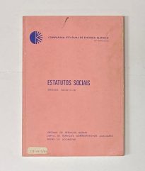 Livro de capa em papel na cor rosa, contendo os Estatutos sociais da CEEE, consolidado e modificado em assembleia geral extraordinária em 1970, e emitido em agosto de 1976. Possui 42 páginas.