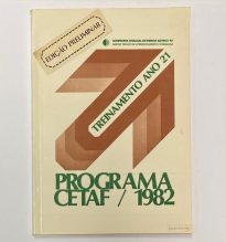 Livro contendo o Programa CETAF/1982 - treinamento ano 21, desenvolvido pelo Centro Técnico de Aperfeiçoamento e formação da CEEE. Trata-se de um livro contendo o plano de ensino para desenvolvimento e aperfeiçoamento dos recursos humanos da empresa.