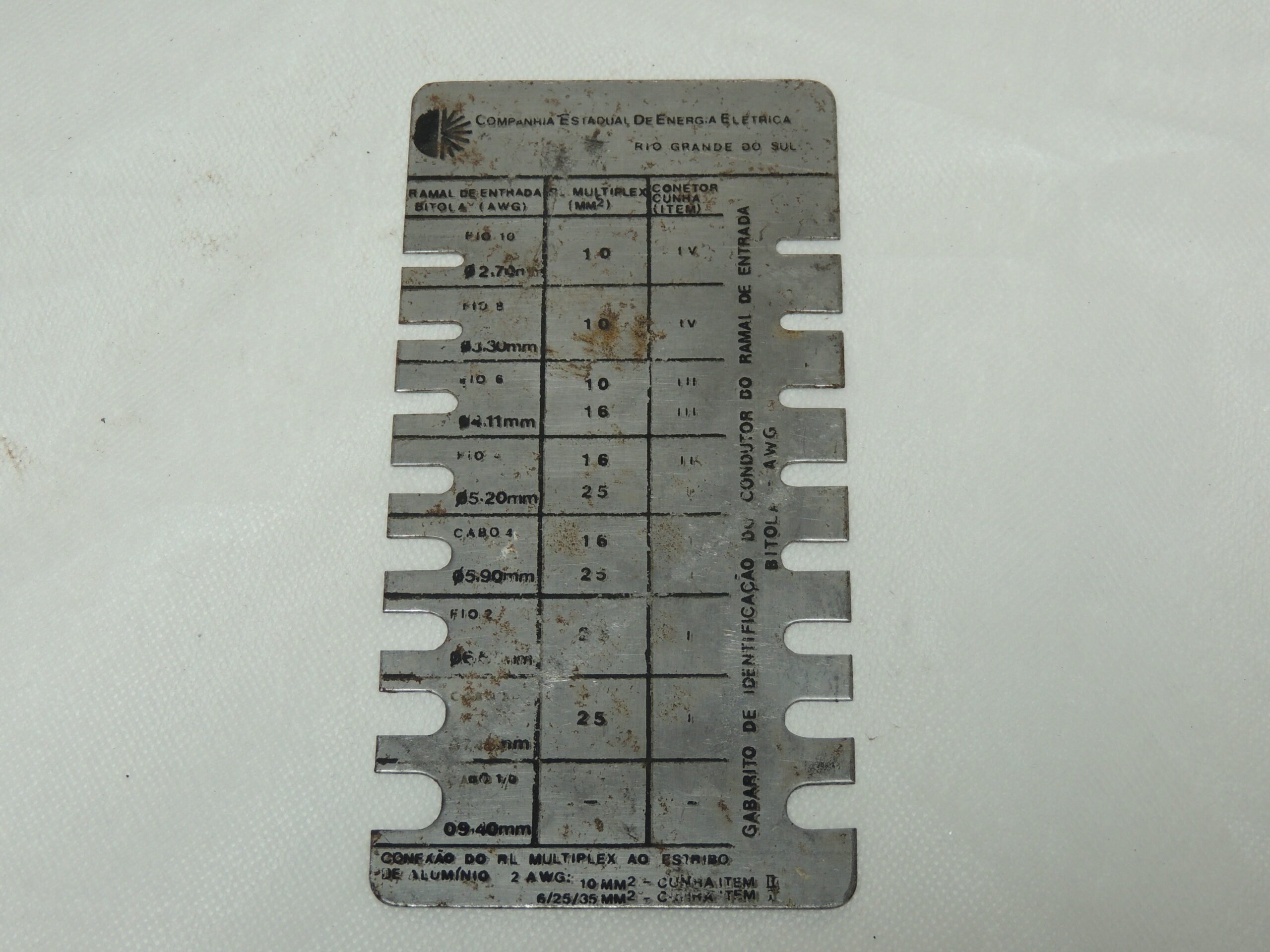 "Gabarito de identificação do condutor do ramal de entrada bitol[não identificável] -AWG".