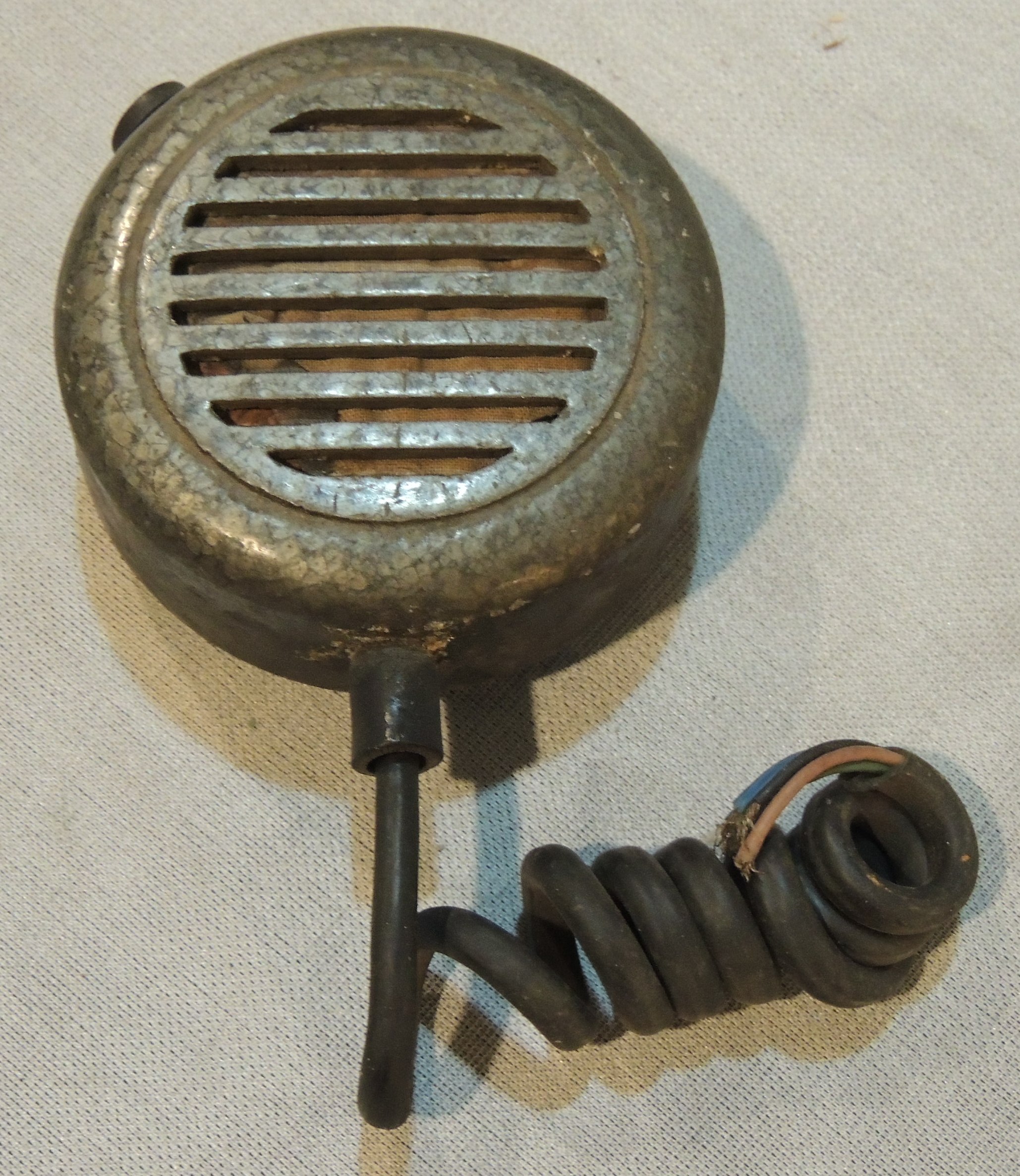 Possui formato cilíndrico. O material de constituição é o ferro revestido de pintura metálica, tipo martelada na cor cinza. O botão de câmbio fica do lado esquerdo. Orifício gradeado na frente (paralelas dentro de um círculo) para permitir a entrada de som emitido. Está ligado a um fio em espiral de aproximadamente 50 cm. Na parte de trás, consta uma etiqueta de metal com a inscrição: "Philips - em - 110 - indústria brasileira".